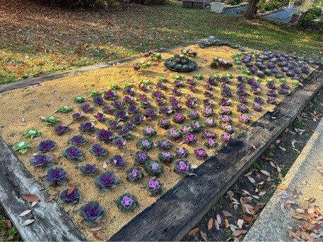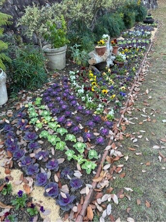 県民協同花壇では、寒菊やハボタンなど冬の植物を植栽しております。